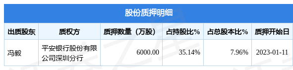 天龙集团(300063)1月12日公开信息显示,股东冯毅向平安银行(000001)股份有限公司深圳分行合计质押6000.0万股,占总股本7.96%。质押详情见下表: